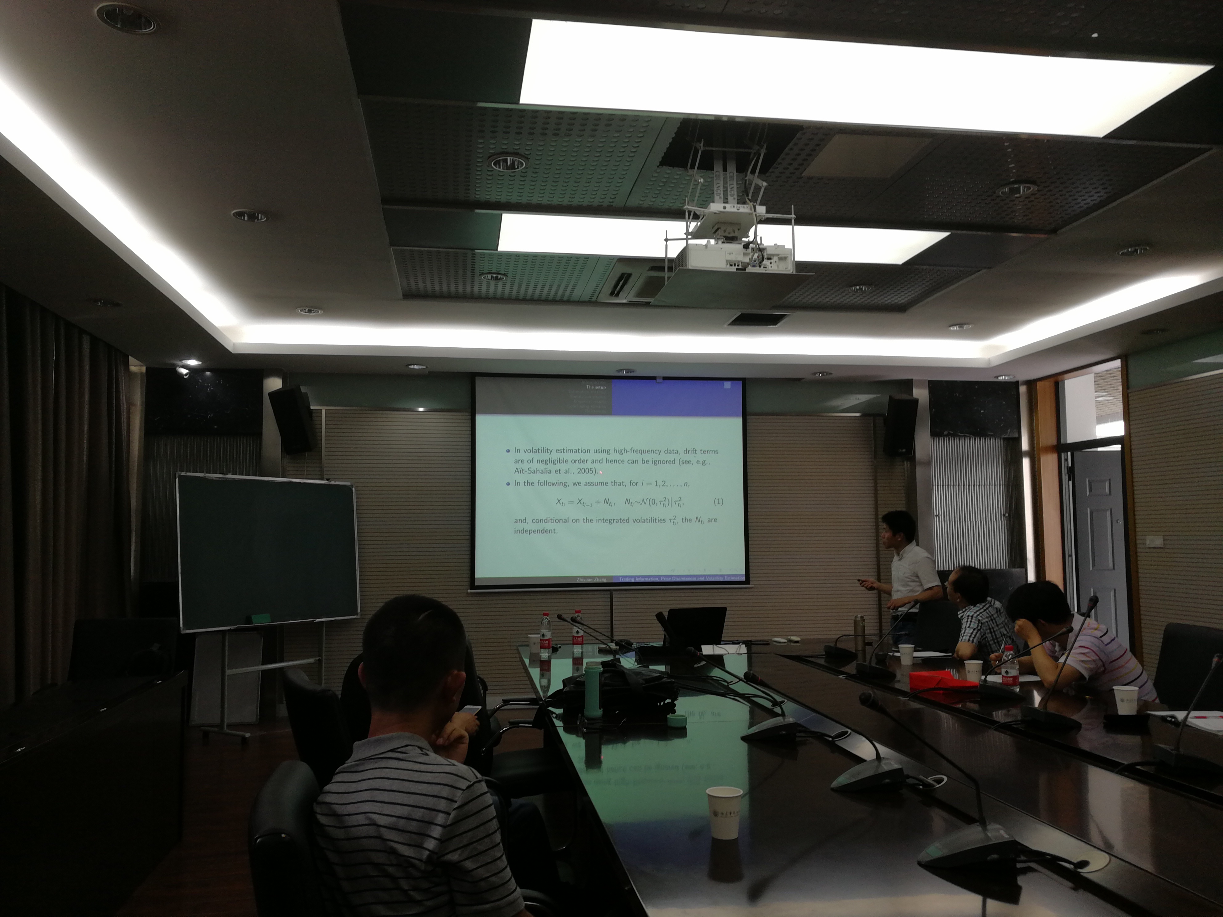 与会老师与员工对张志远副教授的汇报内容展开了讨论,张副教授的研究是在利用已有的波动率估计方法上,通过将更多反映价格的信息纳入到波动率的估计中,以此对波动率有一个相对完整的刻画。报告会在讲解与讨论中持续进行了一个小时。
