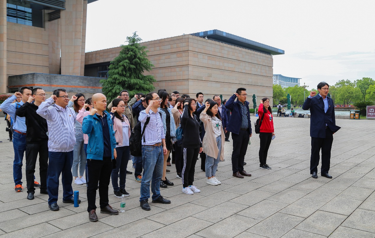 在南湖革命纪念馆的宣誓场上,公司党员们面向巨幅党旗,右拳在握,昂首挺胸,在公司党总支书记苍玉权的领誓下,重温那庄严永恒的入党誓词。