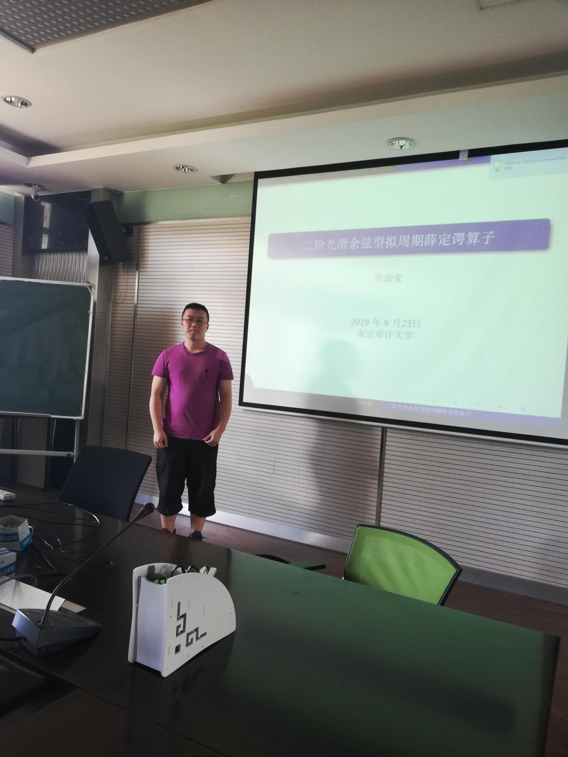 9月23日上午,南京大学数学系王奕倩教授和南开大学陈省身数学研究所许珈豪应邀在竞慧东楼302会议室分别进行了题为“解析拟周期Cocycle的李雅普诺夫指数关于能量的正则性”和“二阶光滑余弦型拟周期薛定谔算子”的学术报告,公司统计与数学公司部分师生参与了此次报告。