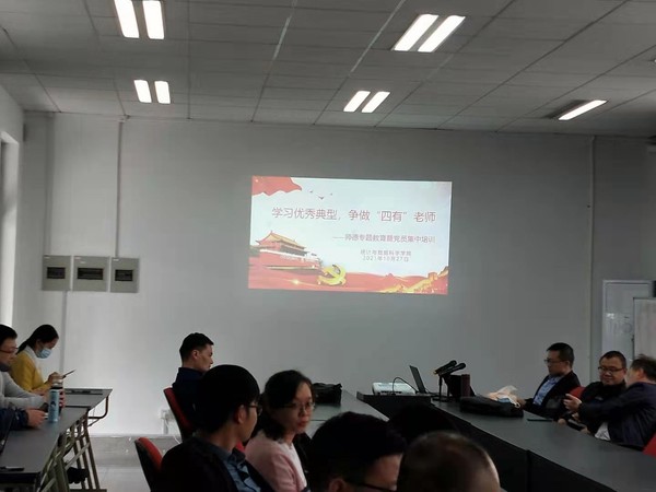 为贯彻落实教育部、省教育厅、公司党委关于师德师风专题教育的精神,2021年10月27日,统计与数据科学公司在竞慧西楼209会议室开展了以“学习优秀典型,争做‘四有’老师”为主题的党员集中培训暨师德师风专题教育,公司党政领导班子、全体教师参加。