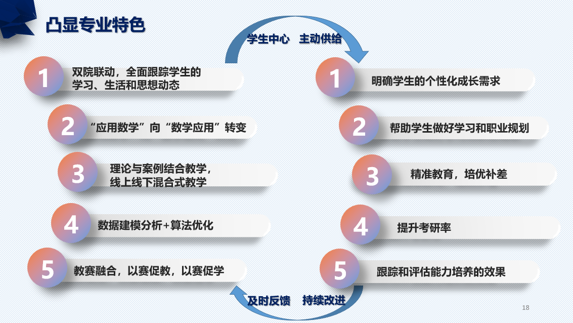 会议分三个阶段。第一阶段,解读培养方案。系主任尤国桥从专业数据化改造的背景、修订培养方案的思路、人才培养目标的确定、具体的课程体系等方面详细介绍了新版数学与应用数学专业人才培养方案。新版培养方案以出口为导向,致力于学以致用、长期增值的培养模式,既注重培养员工的数据分析和逻辑思维能力,又强调提升员工的实践操作能力。