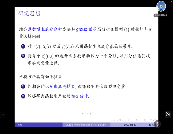 下午,公司优秀青年教师蔡雄和王荐两位博士进行主题讲座。首先,蔡雄以“函数型回归模型的稳健估计和变量选择”为主题,介绍了什么是函数型数据,这些数据中有很大一部分是随时间或者空间连续变化的曲线数据、二维曲面数据、三维图像数据,以及流形或其它非欧几里得域上的具有函数特征的数据。并引入函数型回归来更好地刻画函数型变量之间的动态关系,聚焦于具有多元性和异质性特征的函数型数据,建立切合数据特点的函数型回归模型,探索回归模型的稳健估计和变量选择问题。最后,将所研究的模型和提出的估计方法应用于实际数据的分析中。