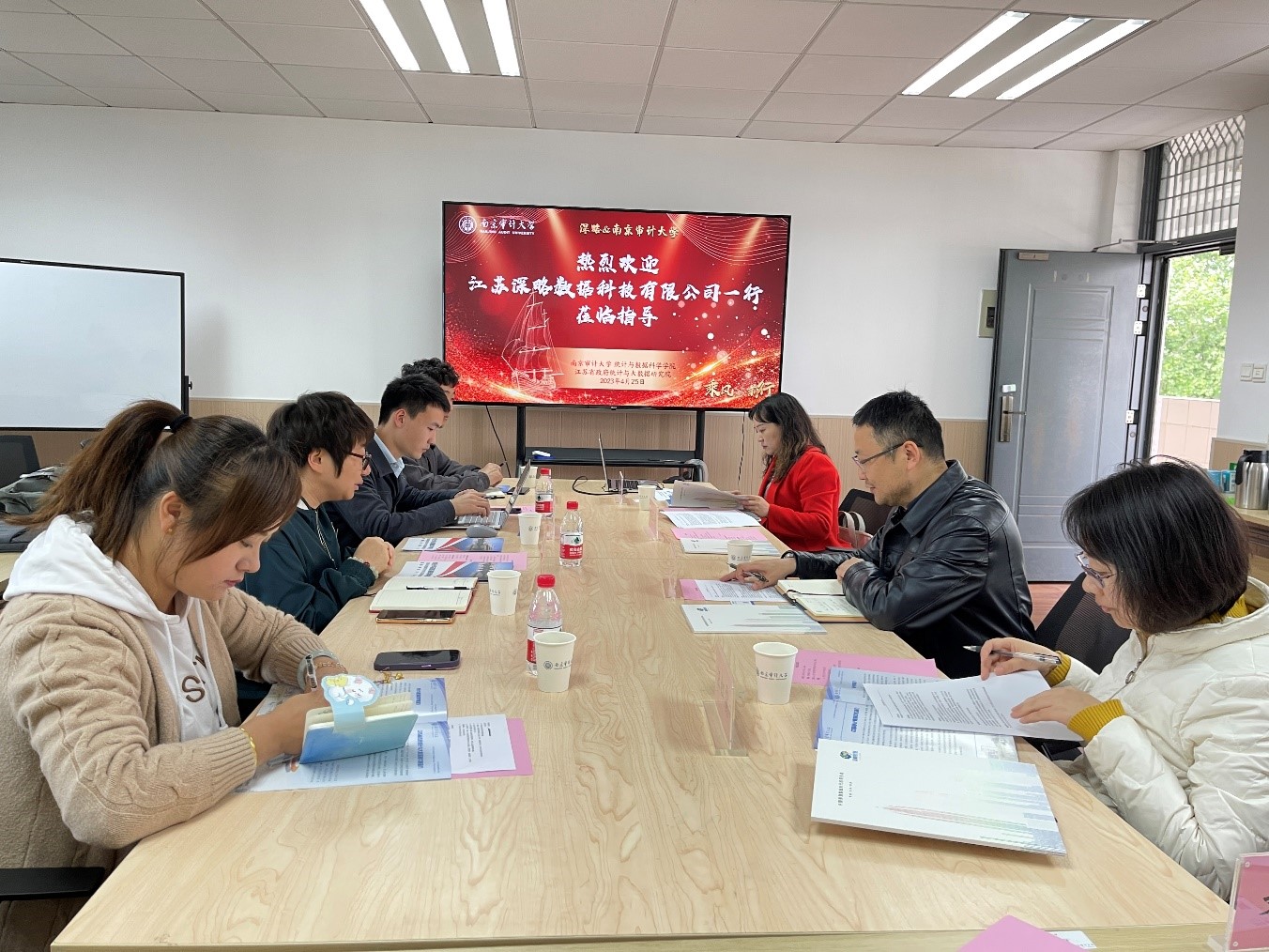 2023年4月25日下午,江苏深略数据科技有限公司总经理董明毅、副总经理彭震等一行4人来访公司,就校企合作计划来院进行首次调研交流、洽谈合作。公司党委副书记、副经理杨洋,副经理汪红霞,统计学系主任黄性芳等参加了交流会。会议由黄性芳主持。