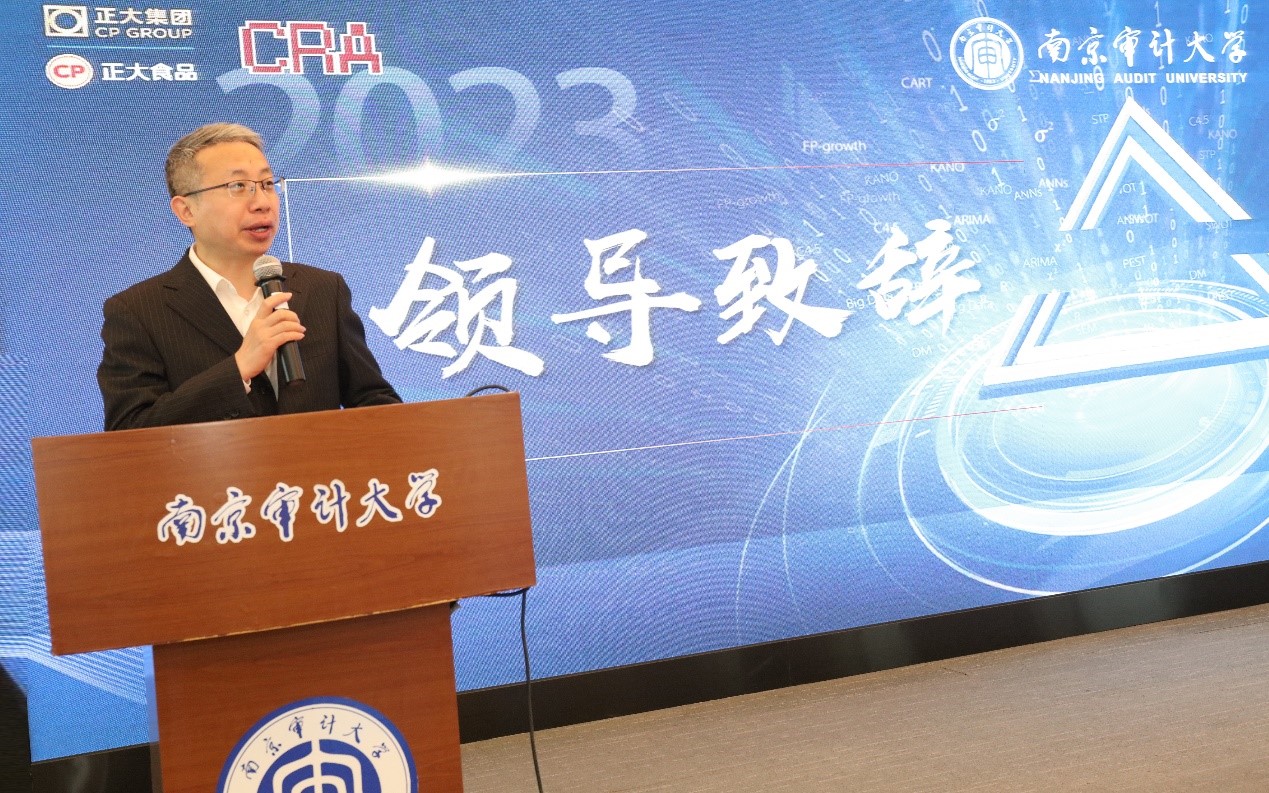姜海副董事长代表承办单位致辞,他表示,南审在加快高水平大学建设的进程中,始终坚持服务审计事业的初心不改,建立和形成优势学科群和特色专业群,以促进员工的全面而自由的发展为目标,大力推进卓越研究生教育体系的建设,形成了“目标驱动、分级管理、分类实施、成果转化”的学科竞赛管理模式,探索建立了课程、讲堂、竞赛、训练和成果孵化五位一体的创新创业教育体系。本次大赛立足市场调查与分析,既是对参赛研究生组织、策划、调查实施和数据处理与分析等专业实战能力的一次全面检阅,也是对各校产学研创新成果的检验,希望参赛选手赛出水平、勇攀高峰。