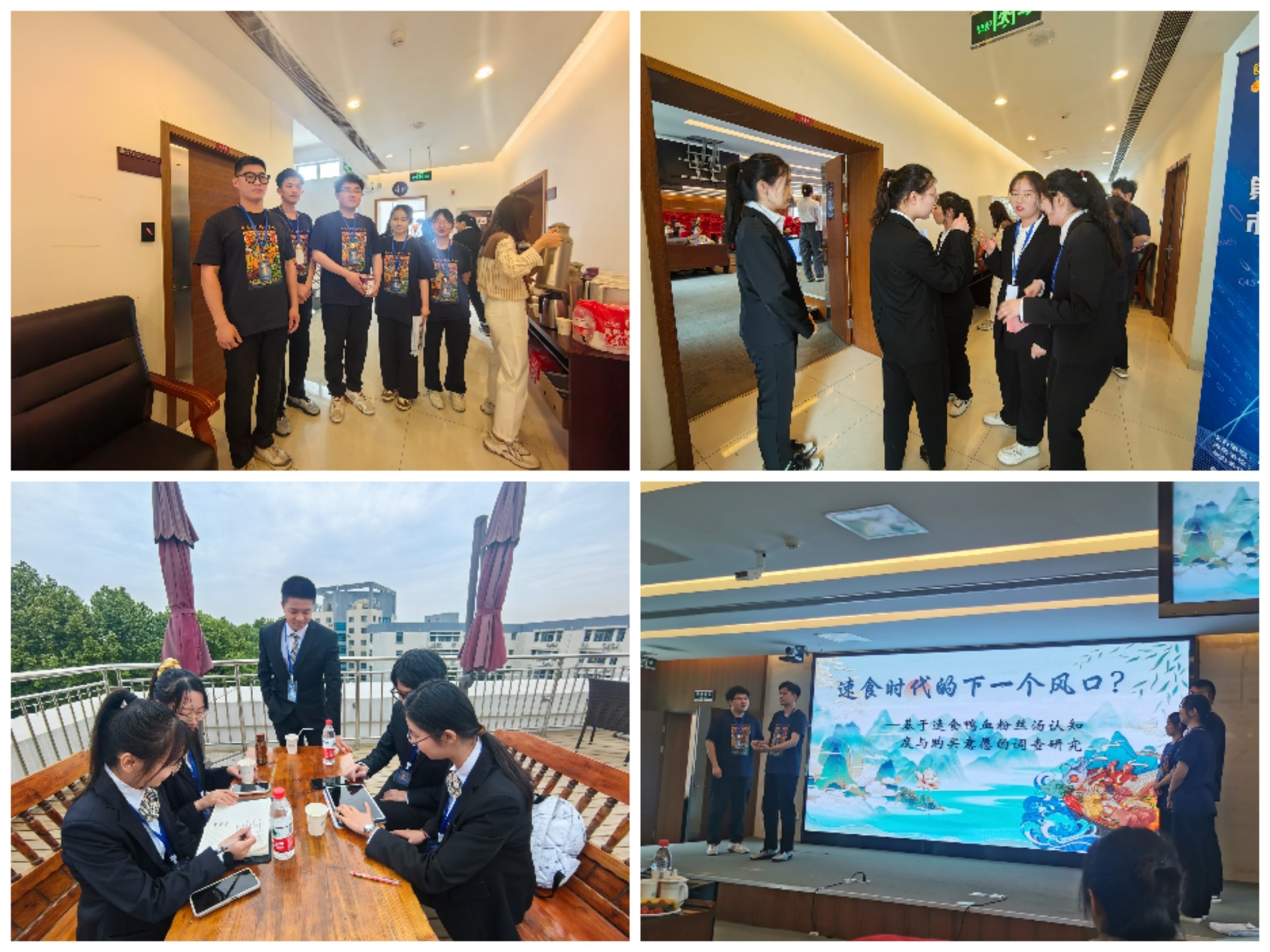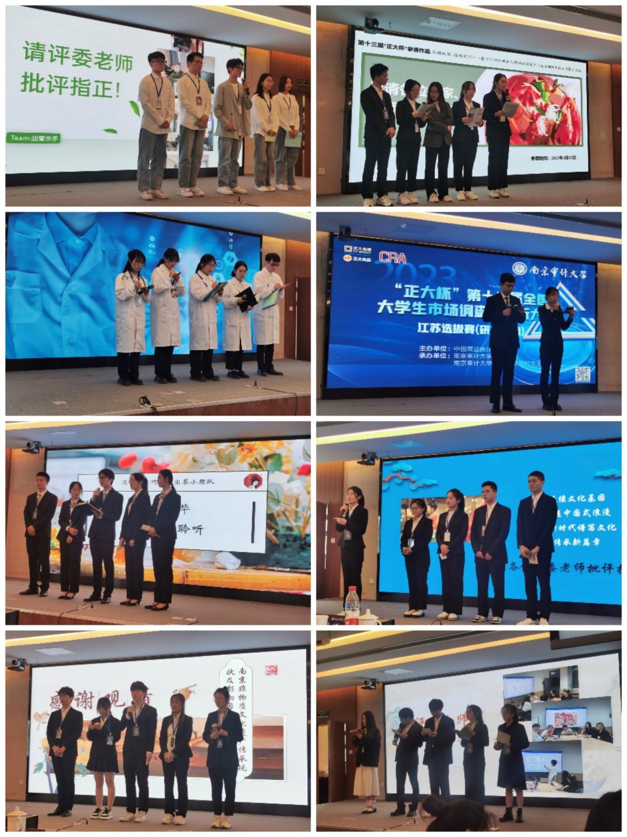 本次大赛吸引了江苏20所高校参加,报名人数1285人,共组成174个参赛队伍。经校赛初选、报告评审等环节,最终遴选出来18支队伍参加现场汇报及答辩赛,共同争夺晋级全国总决赛的名额。决赛作品题材涉及广泛,有自选命题和企业命题,命题均紧扣实际市场需求,涉及文化旅游、非遗传承、预制食品、健康茶饮、数字医疗等。决赛从上午9点开始,到下午5点结束,各参赛作品形式多样,内容丰富,数据充分,分析合理,答辩环节各队队员思路清晰,语言流畅,表现出优秀的专业素养和沟通能力。