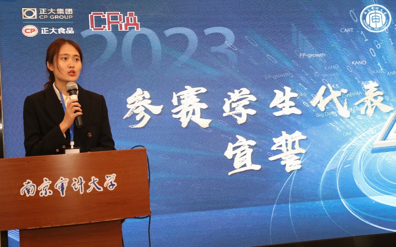 东南大学研究生徐一帆作为员工代表宣誓,她表示作品的完成离不开老师的悉心指导和团队成员的通力合作,并表达了对参加比赛的热情和全力以赴赛出好成绩的信心。