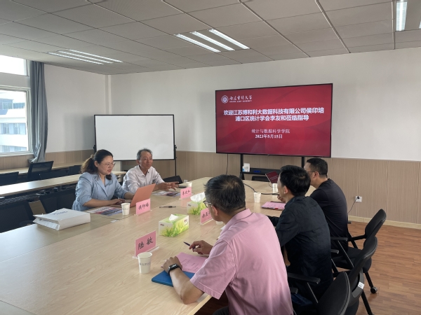 2023年5月15日下午,江苏博和利大数据科技有限公司总经理侯印培、浦口区统计学会李友和等来院交流。公司党委书记徐玉华、经济统计系主任陆敏、副主任郭靖等接待了来访并在位育楼417会议室举行座谈。会议由陆敏主持。