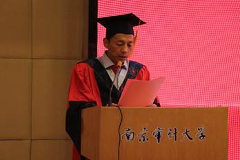 林金官作为教师代表发言。他带领毕业生们回顾了公司的历史,希望毕业生们不要忘记“诚信、求是、笃学、致公”的校训,牢记自己是一名统计人,时刻保持对统计学科的热爱和追求。同时,也希望毕业生们早日成家,与自己的家人一起回母校再会。