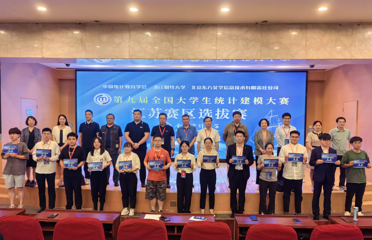 经过激烈角逐,云顶国际yd333、南京林业大学、南京邮电大学,江苏大学、南京财经大学、南京信息工程大学、南京航空航天大学、江苏师范大学、南京工业大学、盐城师范公司等高校的24支本科生队伍和13支研究生队伍获得晋级国赛资格,将代表江苏赛区参加全国总决赛。北京大学房祥忠教授、大赛评审专家代表、统计学科教师代表给37支晋级国赛队伍颁发国赛晋级卡。另外,江苏赛区还有402支队伍获得省级奖项,其中本科生组278支队伍,研究生组124支队伍。