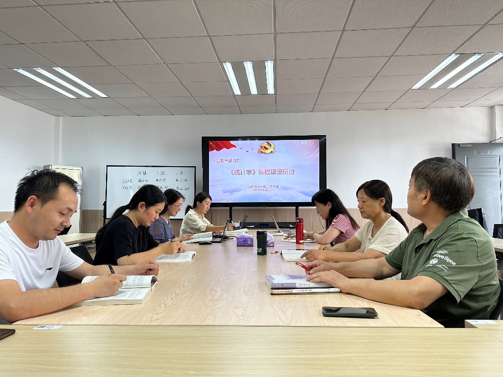 2023年6月19日下午,经济统计系教工党支部围绕统计学课程思政和课程建设在位育楼417展开研讨活动。会议由课程组长郝红霞主持,课程组全体教师参加研讨。