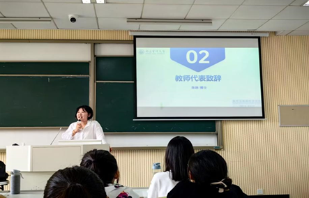 作为教师代表,朱琳老师希望各位同学在度过老员工活好奇和幻想期后,对可能存在的困难和挫折要做好心理准备,要多接触老师和同学,遇到困难和问题可以找老师解决,要合理安排学习和参加活动的时间,尤其是要锻炼好身体。