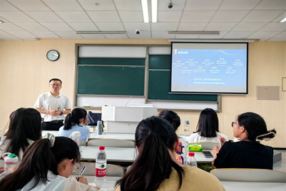 副主任郭靖老师介绍了就业和考研情况,对毕业生的就业单位及各行业就业比例进行了详细的分析。郭老师还重点介绍了往届毕业生的考研比例、院校和专业等信息,建议新生同学们对自己的未来发展做好规划。