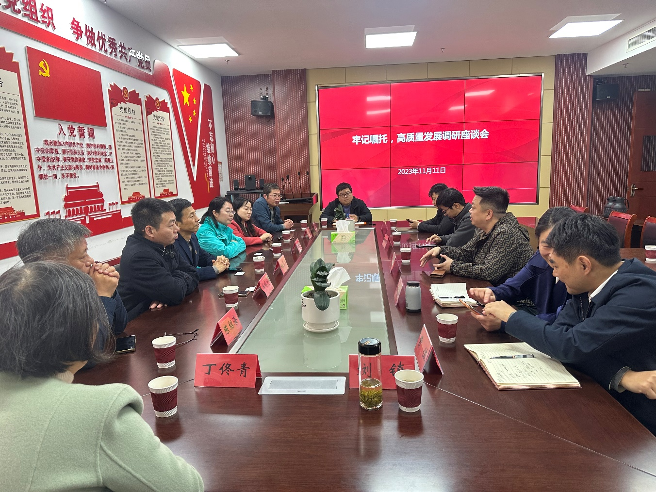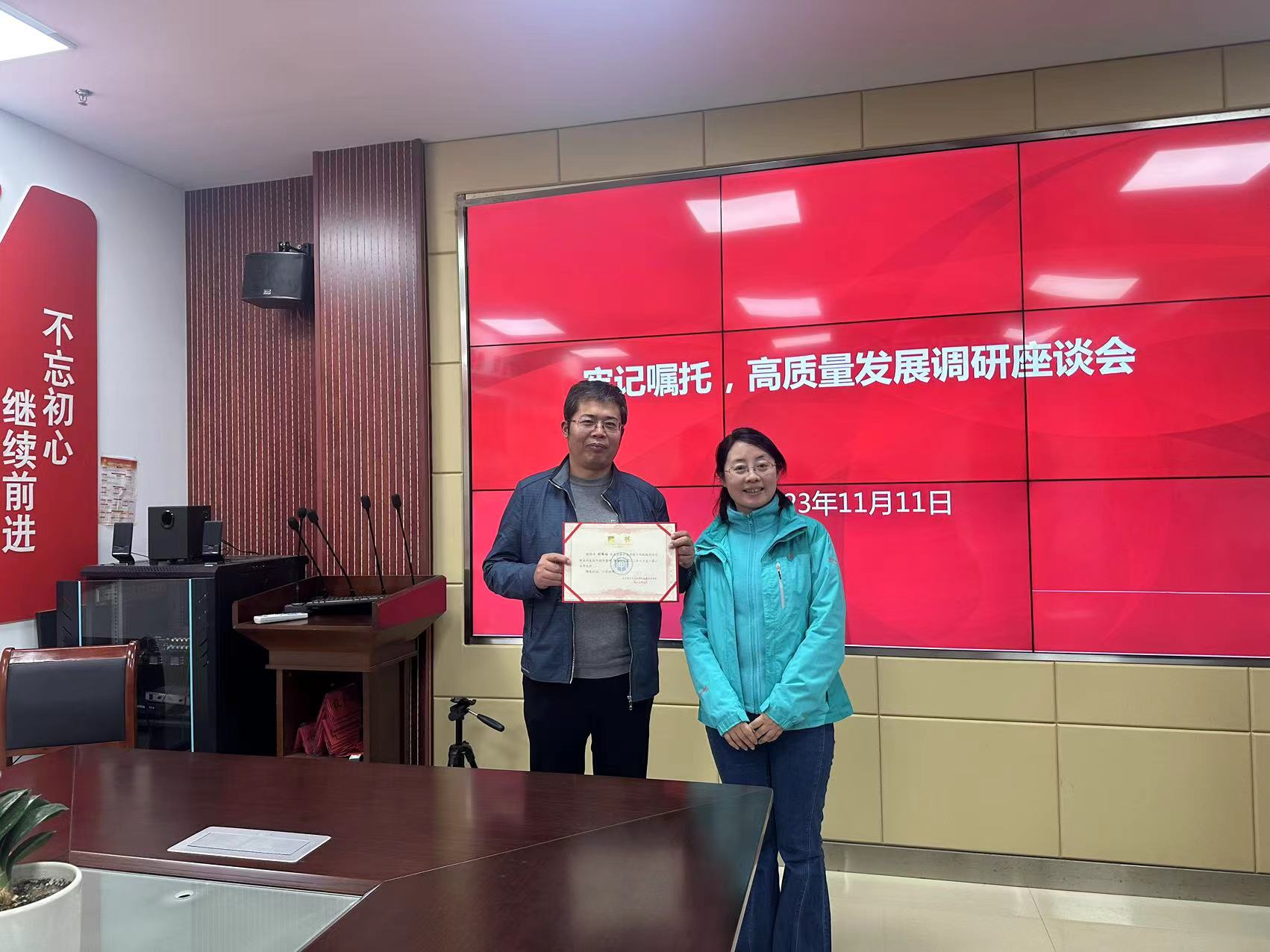 集体学习结束后,公司党委赴淮安区发展和改革委员会开展调研,围绕人才驱动,助力地方经济发展和政校合作开展了对接洽谈。会后,公司与淮安地方员工、公司兼职导师进行了座谈并向他们颁发了聘书。