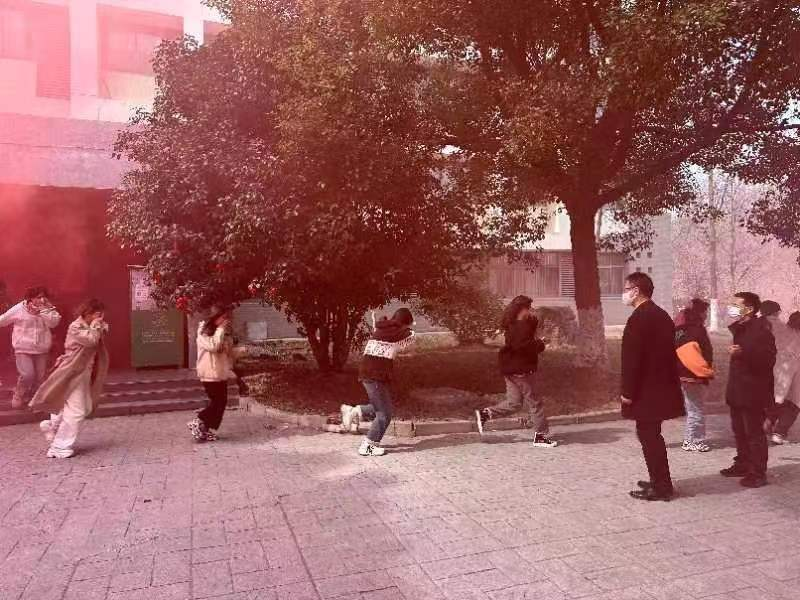 紧急疏散真实还原了火灾场景,考验师生在突发火灾下的应急反应能力和疏散效率。在公司领导的亲自指挥和辅导员的紧密组织下,全体师生按照预定的紧急疏散计划迅速而有序地撤离到安全区域。