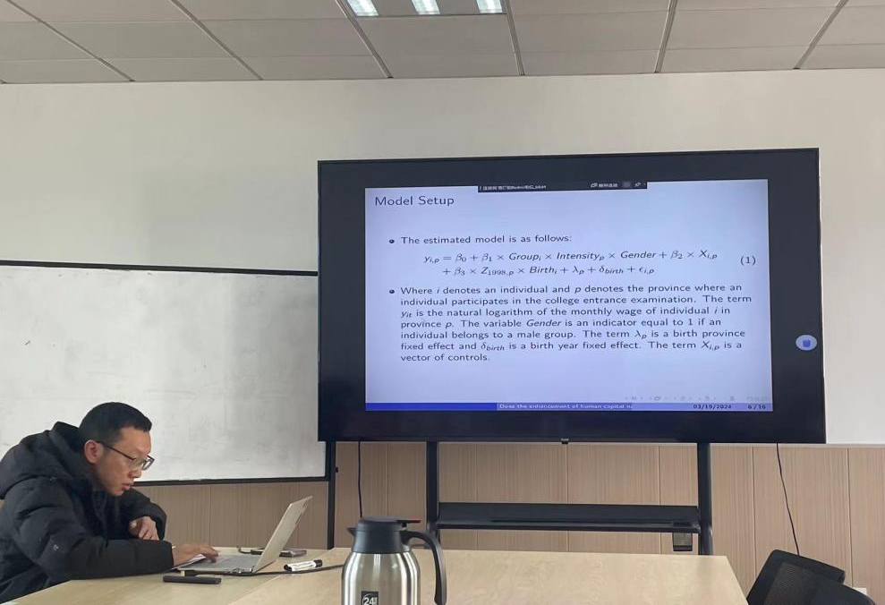 云顶国际yd333于2024年3月19日14:00在位育楼417举办了青年教师学术沙龙(第二期)。此次活动由汪红霞副经理主持。特邀本院的郭靖老师作为报告人,他的研究领域是微观计量经济学。