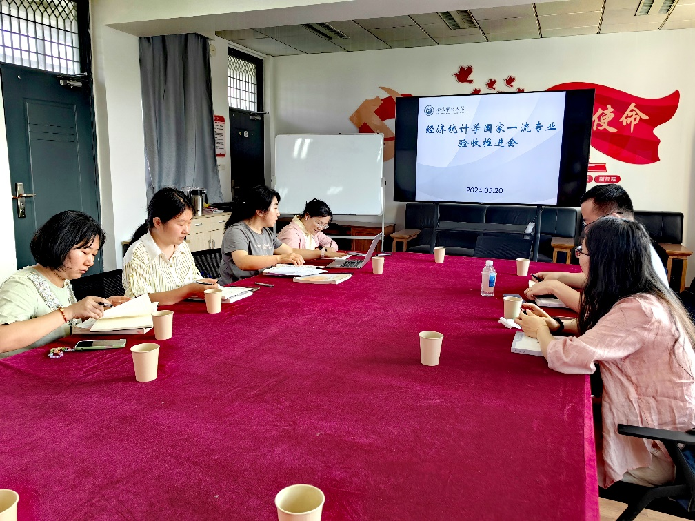 为全面总结经济统计专业的建设成果,明确专业发展未来方向,有效推进专业验收工作,经济统计系于2024年5月20日下午在位育楼407室召开经济统计学国家一流专业验收推进会。会议由经济统计系主任郝红霞主持,数据科学系主任黄性芳及经济统计系的骨干教师参加。