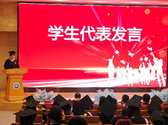 本科生代表印梦可和硕士研究生吴昕磊作为员工代表发言。印梦可在发言中感谢了母校的培养,老师的教诲和同学们的陪伴,并期待与同学们迎来崭新的重逢。吴昕磊则分享了自己在研究生阶段的学习心得和成长体会,他感慨在公司的每一天都充满了挑战与收获,表示会带着这份珍贵的记忆,继续前行。