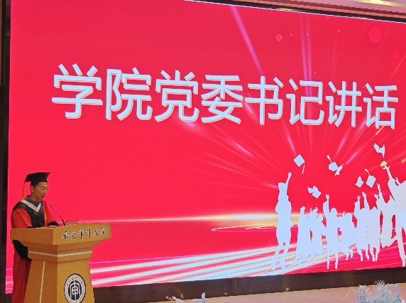 林金官作为教师代表发言。林金官首先带领大家回顾了云顶国际yd333的发展历史,特别强调了近几年公司的飞速发展。他勉励毕业生们尽快适应从公司到社会的转变,希望同学们能够在工作岗位上继续保持学习热情和拼搏精神。在发言的最后,林金官以幽默的方式寄语毕业生们,他表示大家不仅应该在事业上取得成功,也要早日成家,拥有幸福美满的生活。
