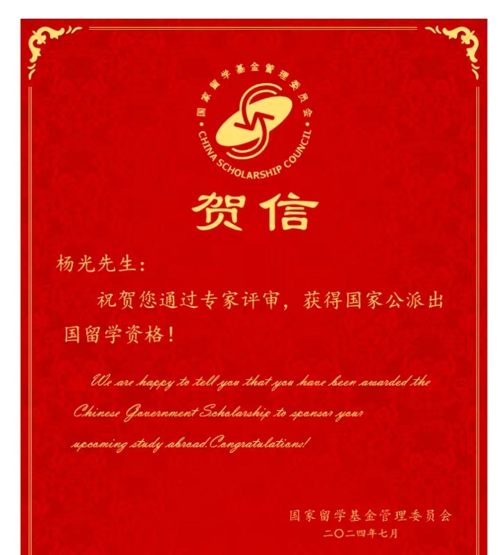 国家公派留学基金是中国政府为促进国际学术交流、培养高层次人才而设立的重要项目,此次联合培养将进一步增进公司同阿尔伯塔大学的交流与合作,为研究人员提供广阔的学术视野和深入的研究机会。杨光表示将会珍惜这次难得的留学机会,努力学习先进的知识和技术,积极参与国际学术交流和合作,不断提升自己的学术水平和综合素质。更希望自己在留学期间能够取得更多的学术成果,为该学科的进步和发展贡献自己的力量,为校增光。