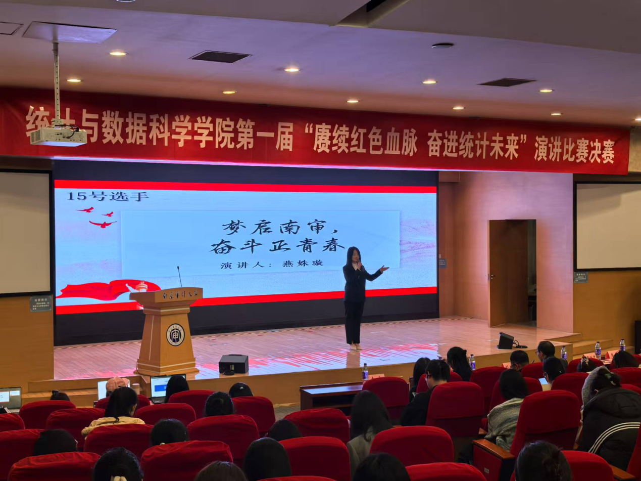 决赛的舞台上,选手们激情演讲。他们的演讲就像一首首激昂的乐章,奏响了红色传承与统计梦想的交响曲。从对往昔红色岁月的深情缅怀,到将红色精神与当今统计学科发展的紧密结合,每一位选手都展现出独特的视角和深刻的思考。那充满激情的声音,回荡在决赛的场地,让在场每一个人都深刻感受到红色血脉中蕴含的力量,让观众们感受到新一代统计学子不仅有扎实的专业知识,更有崇高的使命感和远大的理想。