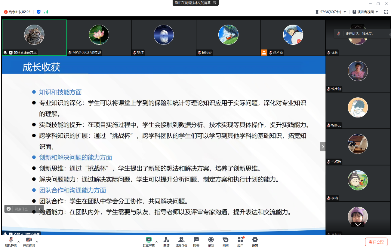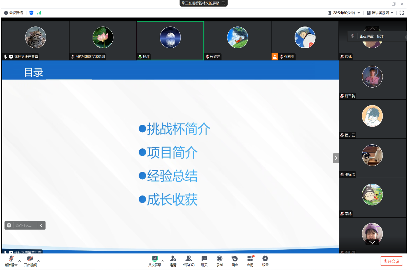 报告开始后,钱林义教授从挑战杯简介、项目简介、经验总结、成长收获四个方面,为与会的研究生们全面而深入地剖析了参赛的注意事项及现实意义,特别详细地分享了如何巧妙选题、构建高效项目团队、理清研究思路、撰写高质量内容以及答辩展示等宝贵经验,为与会员工们提供了极具价值的参考。