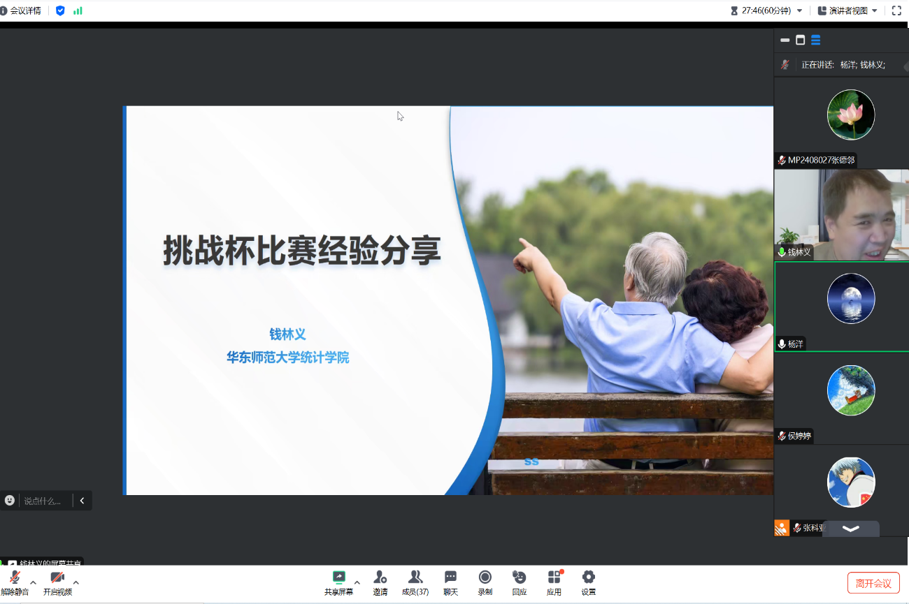 2024年12月11日晚,华东师范大学统计公司经理助理、保险与精算系系主任钱林义教授应邀为云顶国际yd333研究生做竞赛指导。本次报告采取线上的方式开展,由云顶国际yd333副书记、副经理杨洋教授主持。