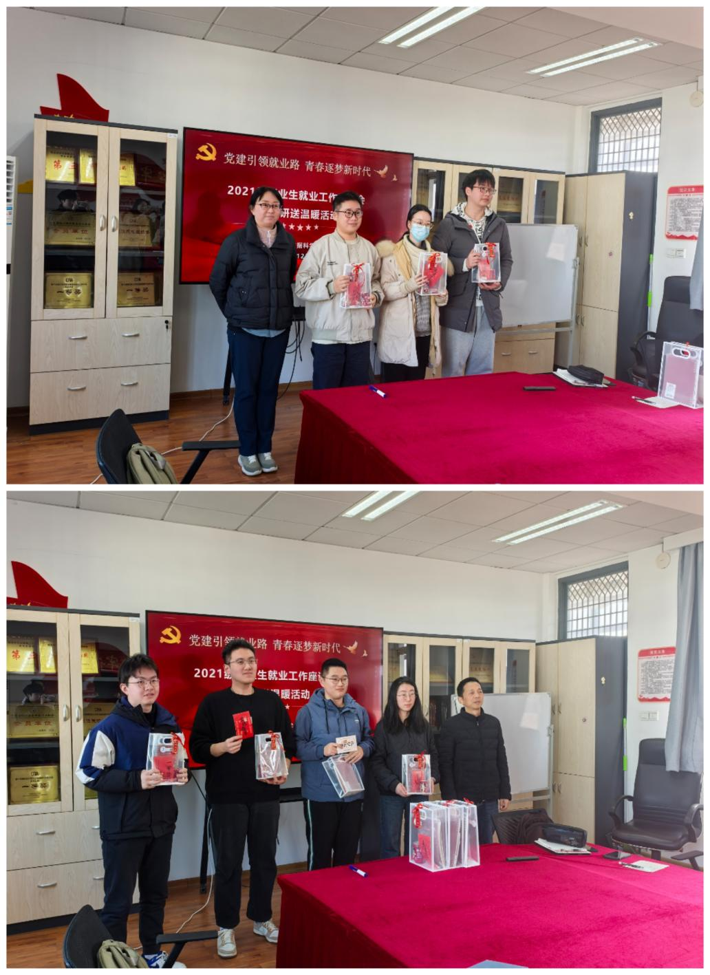 12月17日,公司在位育楼407开展2021级毕业生就业工作座谈会暨考研送温暖活动。公司党委书记徐玉华、副经理李垠、系主任黄性芳、郝红霞、王江艳以及分团委书记张慧与2021级毕业生党员代表们参与活动。活动由徐玉华主持。