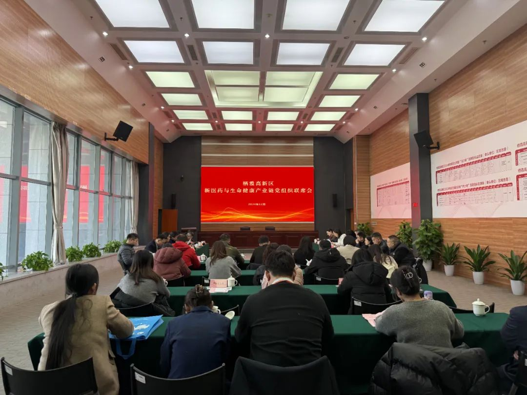 会上,高新区党群工作部部长潘家燕宣布了12家产业链党组织的扩容名单,公司荣幸位列其中。这也标志着公司产业链党组织结对共建进入实质推进阶段。随后,徐玉华代表公司进行了交流发言。他详细介绍了公司在教学、科研以及社会服务等方面的成果和进展,并表达了公司对于高新区新医药与生命健康产业链党建工作的感谢。他指出,这一党建平台为校政银企的深度合作提供了宝贵的机遇,公司愿与产业链上的企业紧密合作,加强信息互通,精准对接需求,共同开展科技攻关,为经济的蓬勃发展贡献力量。