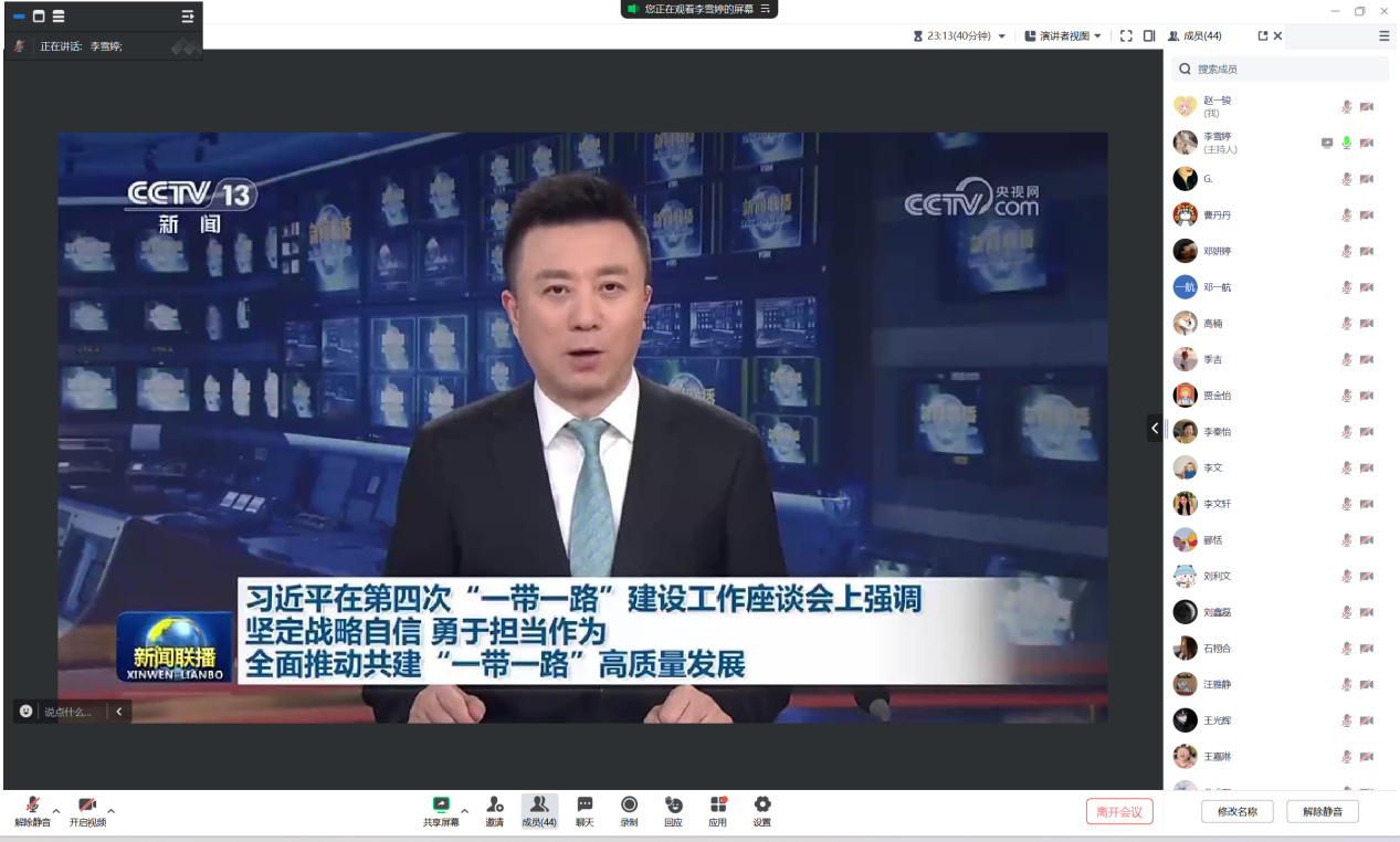 最后,全体党员观看了习近平总书记在第四次“一带一路”建设工作座谈会上的重要讲话,通过习近平总书记的重要讲话,全体党员意识到了在当今严峻复杂的国际局势下,共建“一带一路”高质量发展既面临挑战,也蕴藏机遇,我们应坚定信心,沉着应对,以担当和实干推动“一带一路”建设迈向更加光明的未来。