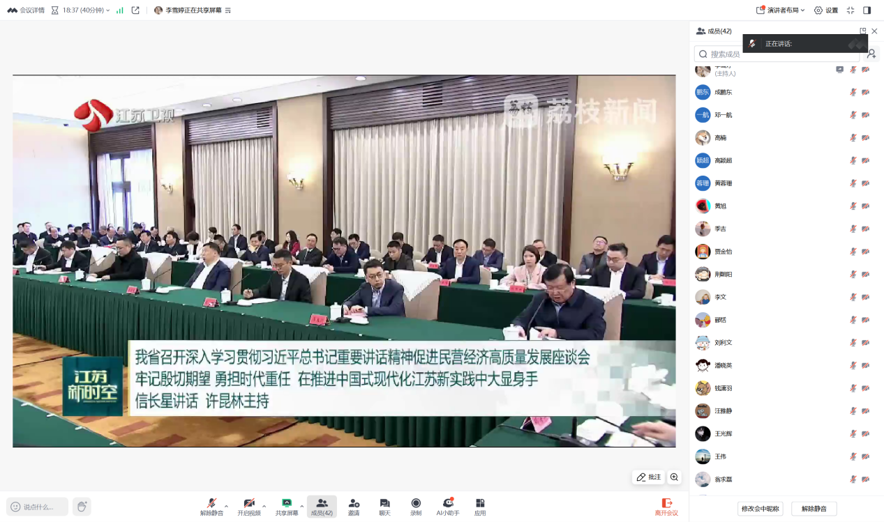 在“民营经济发展”和“全面从严治党”部分,支部全体党员同志深入学习了习近平总书记在民营企业座谈会上的重要讲话、《健全全面从严治党体系》重要文章以及江苏省委贯彻讲话精神的相关部署,深刻领会了习近平总书记对民营经济发展作出的战略判断和支持民营企业发展的坚定态度,明确了江苏作为经济大省应勇挑重担、走在前列的责任。