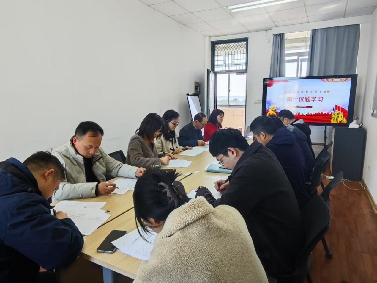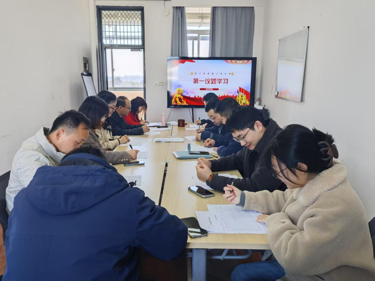 会议专题传达2025年全国两会精神,重点学习政府工作报告中“加快发展新质生产力”“深化教育科技人才综合改革”等部署,并结合江苏教育大会内容,从教研对标需求和党建融合创新两个方面谈会议精神的落地转化。