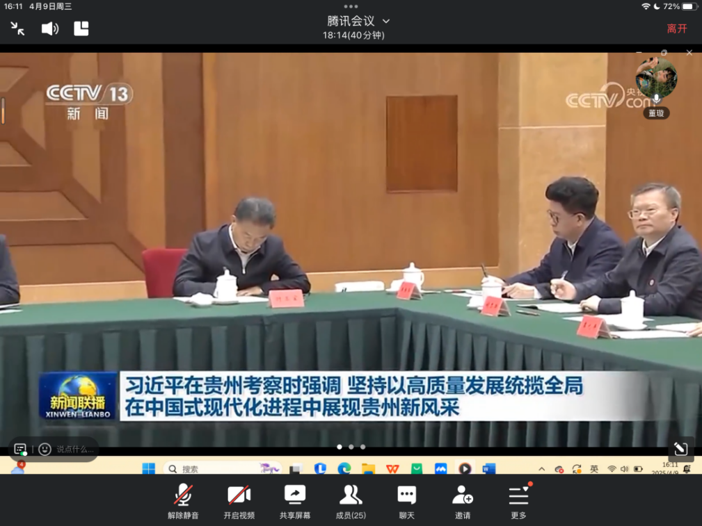 会议首先传达了习近平总书记近日在贵州考察时的重要讲话精神。在贵州,总书记强调要坚持高质量发展统揽全局,立足生态优势推动数字经济、新能源等产业发展,同时注重少数民族文化保护与乡村振兴有机结合,体现了“因地制宜谋发展”的科学方法论。董璇总结:“贵州的数字化探索经验启示我们,高质量发展需紧扣地方特色,统筹生态保护与经济增长,这为青年学子科研方向提供了重要指引。”