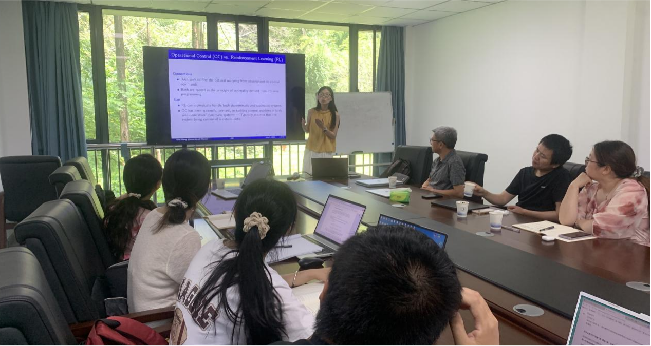 阿尔伯塔大学王亚飞助理教授报告了她们有关强化学习最新研究成果,有限时域噪声线性二次强化学习的统计推断,系统建立策略梯度估计量的精确渐近理论,创新地采用在线自助法构建最优策略的置信区间,填补了强化学习在统计推断领域的理论空白,为智能决策系统的可靠性评估提供关键支撑。